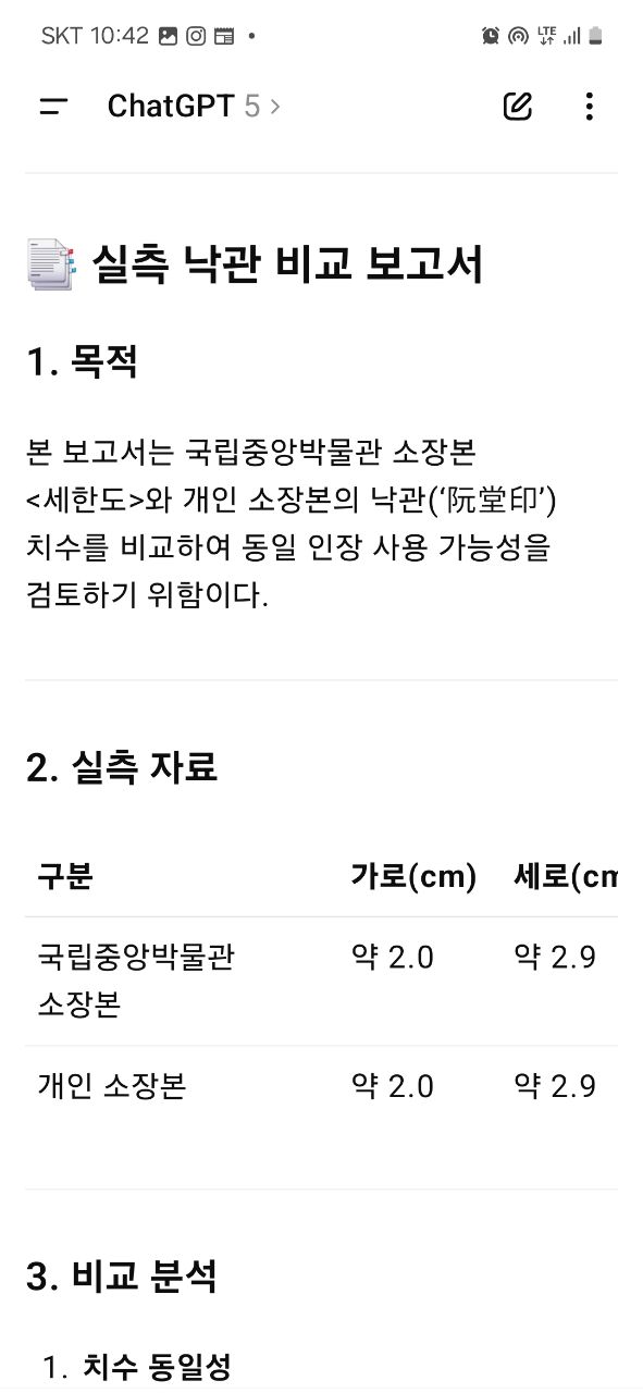 국립 박물관 세한도와 본 세한도는 낙관의 위치 선의 굵기등이 확연하게 다릅니다.
